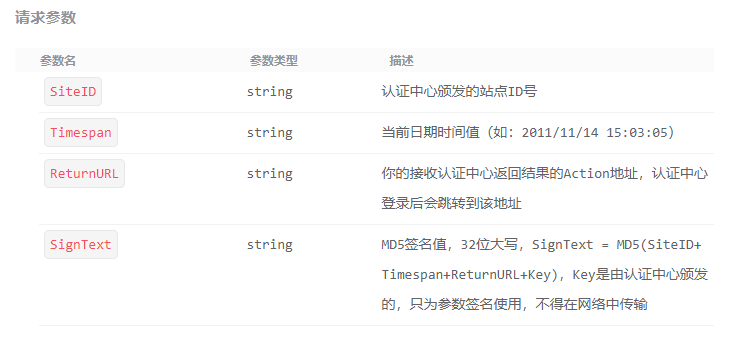 在认证中心完成登录后,会重定向到 ReturnURL 指定的地址,并通过 QueryString 携带以下参数: